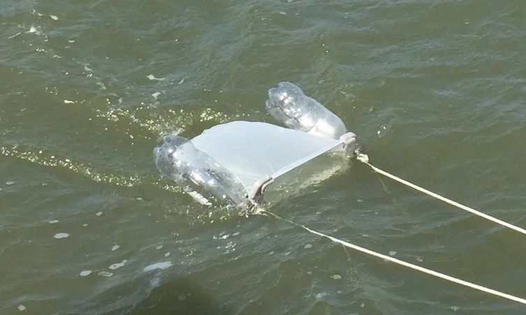 The trawl is made from waste steel scrap and plastic bottles. Future improved versions will be to 3D print this trawl out of recycled plastic.